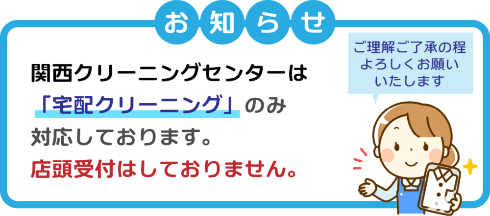 関西クリーニングセンターは、2026年より宅配クリーニング専門店となりました。
